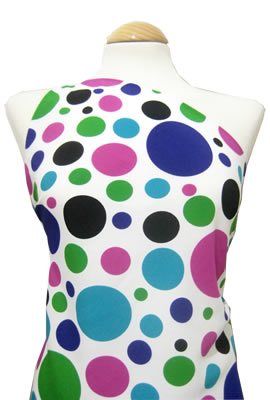 水玉模様 L1403 生地の種類: コチーボ 素材: ポリエステル 幅: 150cm 柄の大きさ: 約1.5cm~8cm 質感: やわらかく、シワになりにくい 用途: バイレ全般 無料サンプル: なし 販売価格: 10.50€ (1371円) |