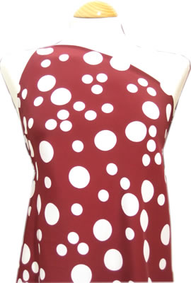 水玉模様 L1517 生地の種類: コチーボ 素材: ポリエステル 幅: 150cm 色: ボルドー・白 柄の大きさ: 約 1.9cm/3.6cm 質感: やわらかく、シワになりにくい 用途: バイレ全般 販売価格: 15.50€ (2023円) |