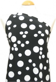 水玉模様 L1521 生地の種類: コチーボ 素材: ポリエステル 幅: 150cm 色: 黒・白 柄の大きさ: 約 1.9cm/3.6cm 質感: やわらかく、シワになりにくい 用途: バイレ全般 |