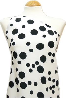 水玉模様 L1522 生地の種類: コチーボ 素材: ポリエステル 幅: 150cm 色: 白・黒 柄の大きさ: 約 1.9cm/3.6cm 質感: やわらかく、シワになりにくい 用途: バイレ全般 |