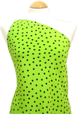 水玉模様 L1626 生地の種類: コチーボ 素材: ポリエステル 幅: 150cm 色: ピスタチオ・黒 柄の大きさ: 約 0.8cm 質感: やわらかく、シワになりにくい 用途: バイレ全般 販売価格: 13.50€ (1762円) |