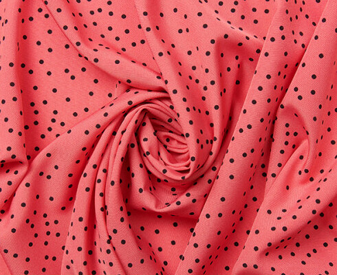 水玉模様 L2336 生地の種類: クレスポン 素材: ポリエステル 幅: 約150cm 色: サーモン・黒 柄の大きさ: 水玉:約0.3cm 質感: やわらかく、シワになりにくい 用途: バイレ全般 |