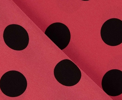 水玉模様 L2354 生地の種類: コチーボ 素材: ポリエステル 幅: 約150cm 色: くすみストロベリー・黒 柄の大きさ: 水玉:3.3cm 質感: やわらかく、シワになりにくい 用途: バイレ全般 無料サンプル: なし |