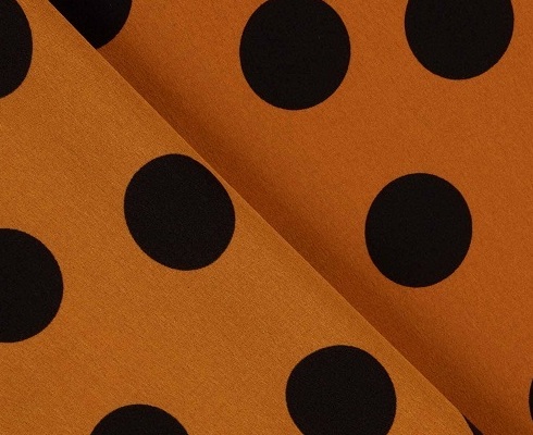 水玉模様 L2361 生地の種類: コチーボ 素材: ポリエステル 幅: 約150cm 色: くすみクロムオレンジ・黒 柄の大きさ: 水玉:3.3cm 質感: やわらかく、シワになりにくい 用途: バイレ全般 無料サンプル: なし |
